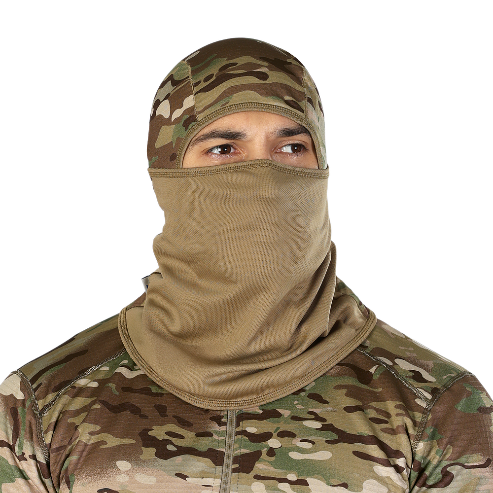 Нижня частина балаклави рухома, що дозволяє легко та швидко регулювати посадку на голові та змінювати конфігурацію носіння. Її можна використовувати як підшоломник, шапку, маску чи баф.
