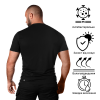 Футболка виготовлена з тканини CoolPass antistatic. Це інноваційна, антистатична й антибактеріальна тканина, яка завдяки спеціальній структурі ефективно виводить вологу з поверхні шкіри та випаровує її зовні тканини, чим захищає організм від перегріву і залишає шкіру сухою. Тканина не вигорає, не мнеться та не сідає після прання.