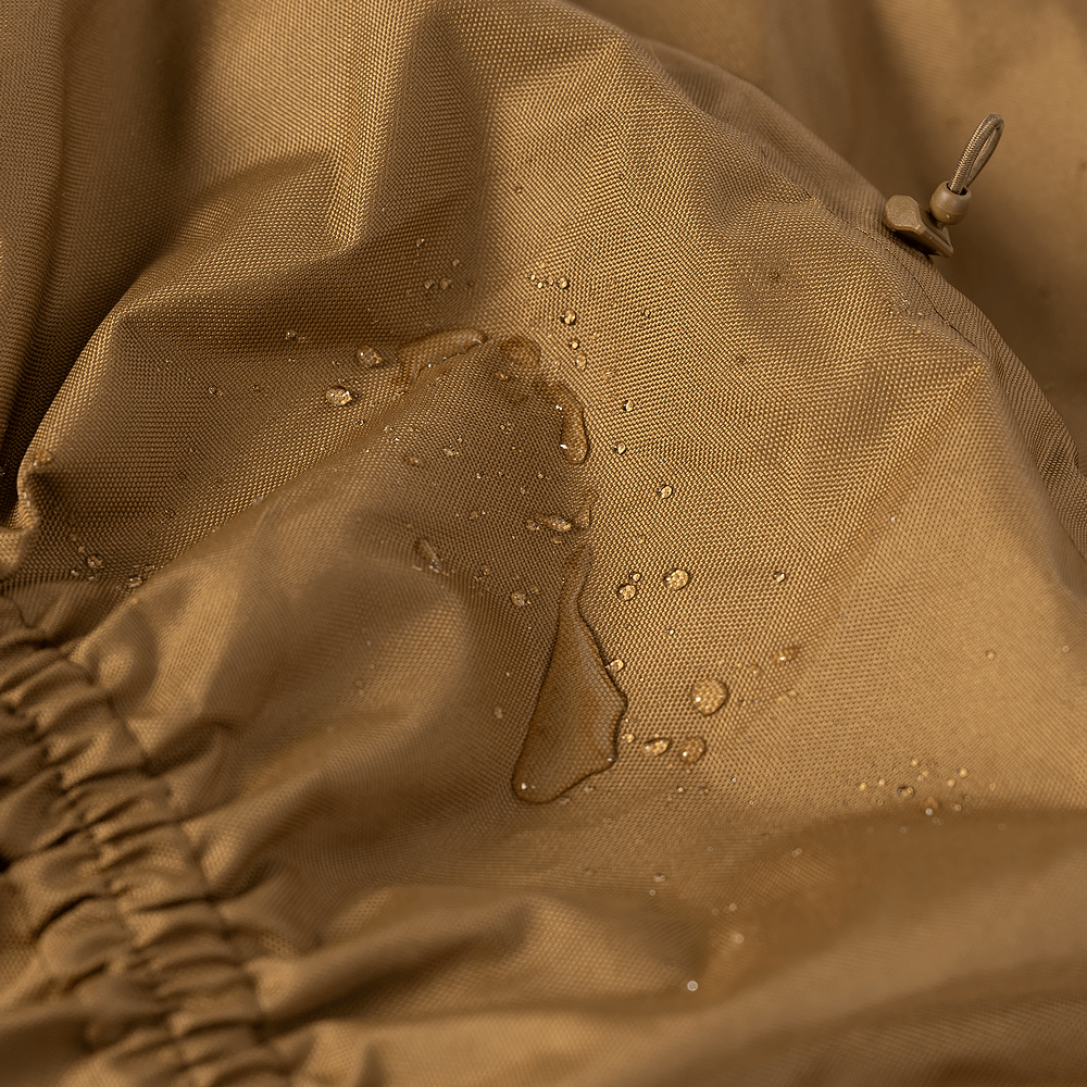 Гамаші виконані з тканини Oxford 300D з поліуретановим покриттям (PU) зсередини та гідрофобним просоченням зовні. Це захистить від промоконання та забруднення одягу та взуття, під гамашами. Також тканина дуже щільна та зносостійка, яка здатна витримувати значні навантаження, стійка до розривів та стирання..