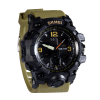 - Подвійний, інформативний циферблат з LED-пісвіткою, який відображає час у двох форматах, а також календар.