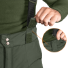 Штани мають широкий, утеплений пояс який додатково захищає поперек від продування. Застібається на застібку блискавку з захистом від самовільного розстібання, а також ще на дві металеві заклепки.