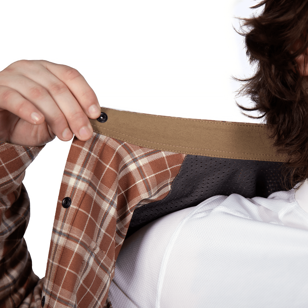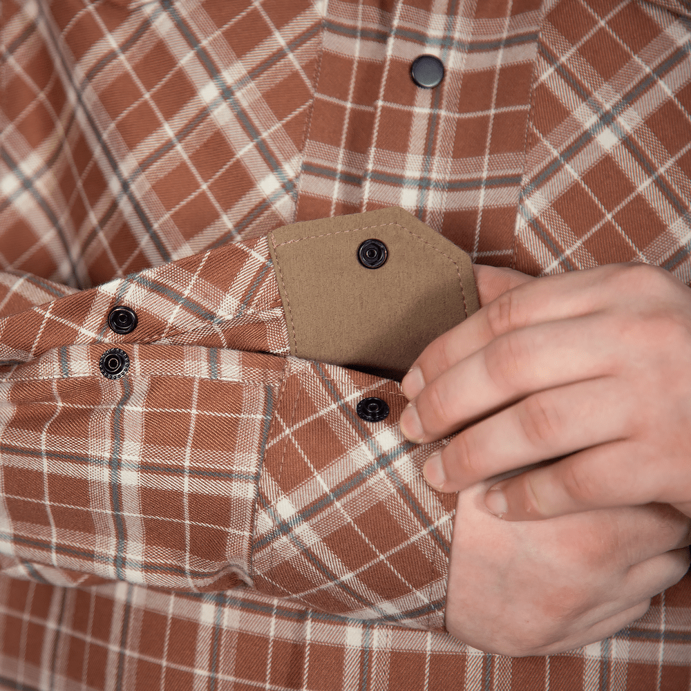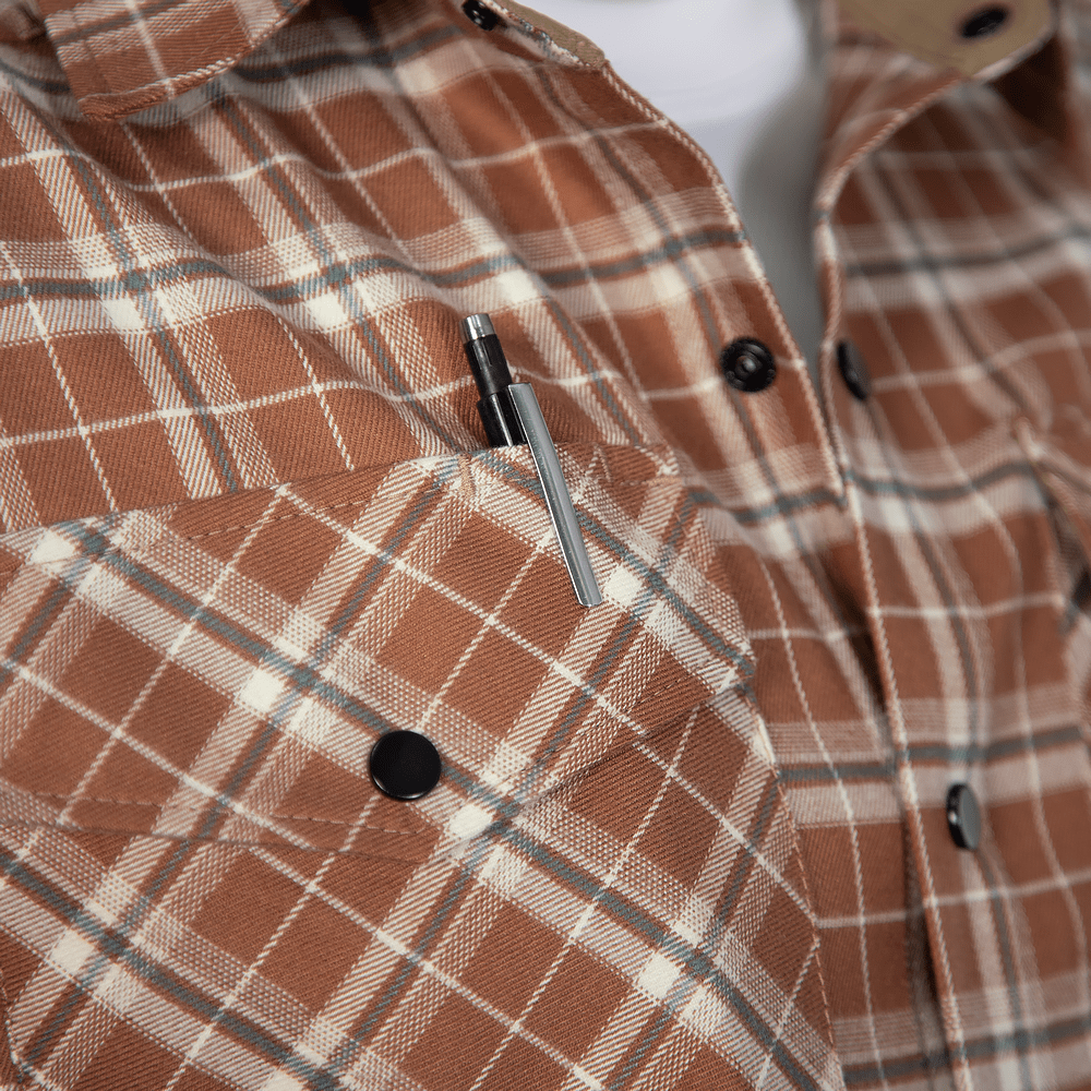 Наша сорочка має класичний вигляд із нагрудними кишенями та картатим візерунком, але має ряд прихованих функціональних деталей, що значно покращує комфорт.