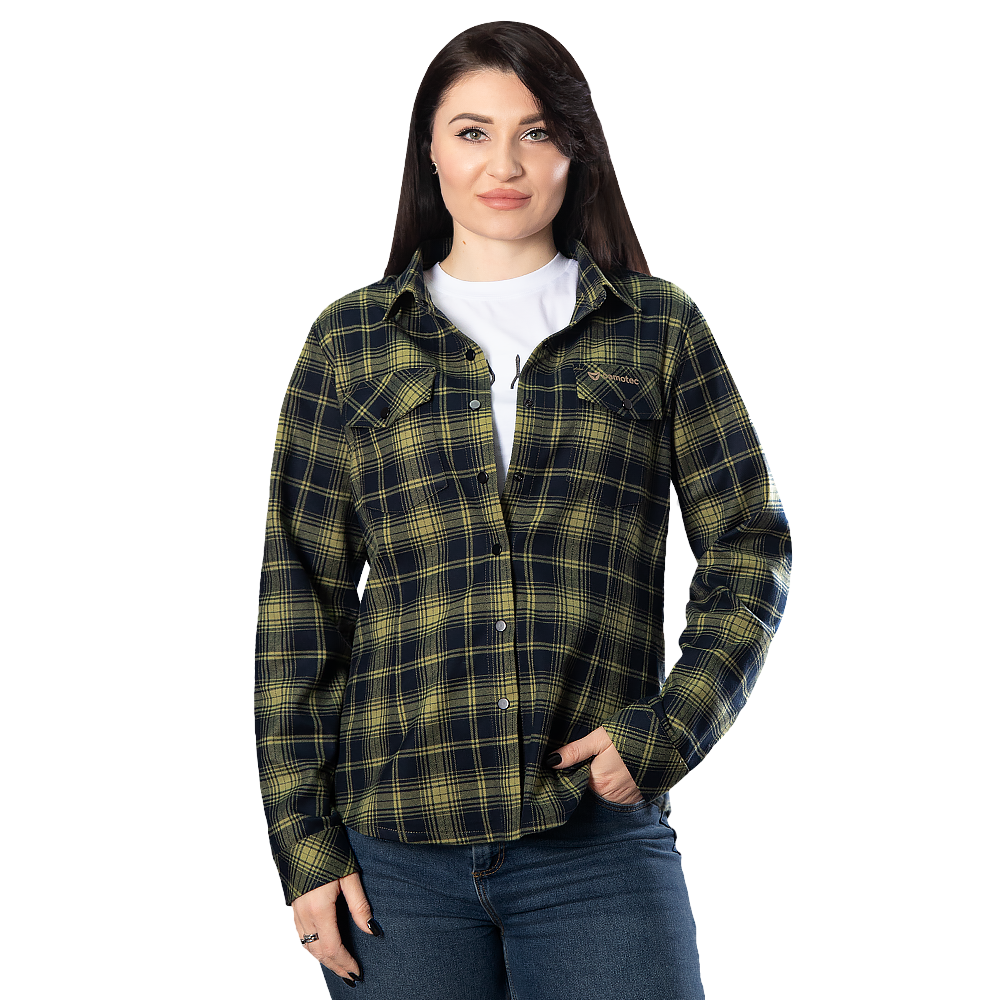 Жіноча сорочка з картатим візерунком, виготовлена із комбінованої (віскоза+поліестер) тканини. Має класичний дизайн, продуманий крій та приховані функціональні деталі, що забезпечують максимальний комфорт та стильний вигляд.